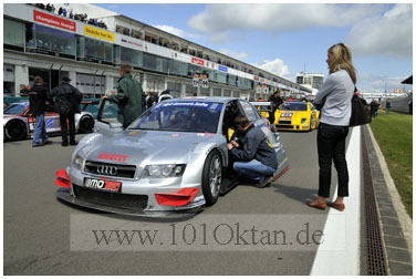 Audi A4 DTM mit Mechanikern in der Startaufstellung