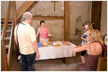 mit dem Förderverein Burg Grimburg mit Erfrischungen sowie Kaffee