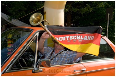 beim Public Viewing die deutsche Fußball Nationalmannschaft auf