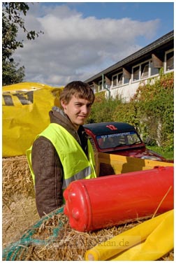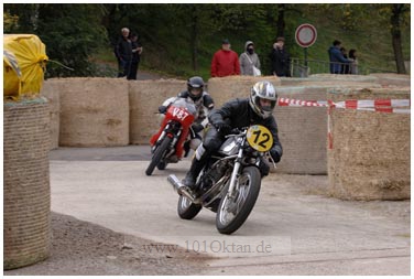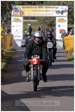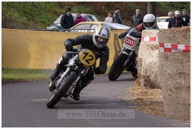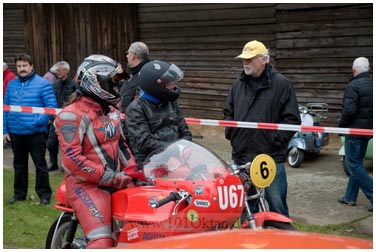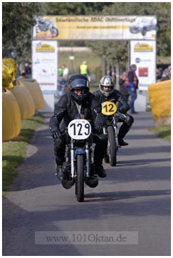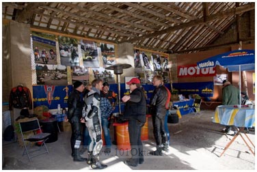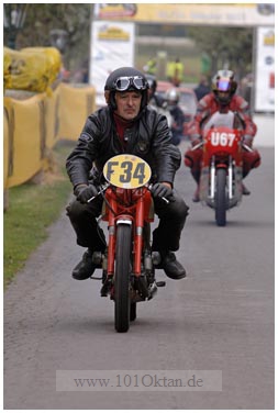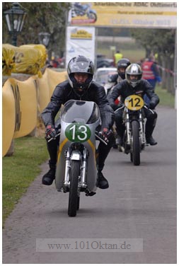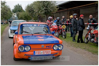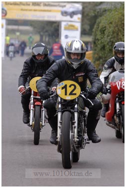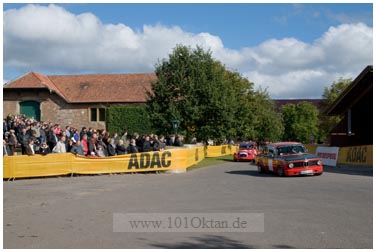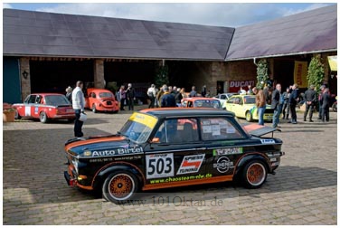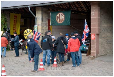 Altes Fahrerlager mit Piloten und Fahrgästen