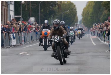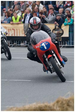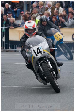 Auch bei den Zuschauern, die zu Tausenden am Straßenrand stehen, ist es zu erkennen. Bei Norbert Braun (73) wecken die vorbeifahrenden Motorräder Kindheitserinnerungen. Die Dreiecksrennen zwischen 1948 und 1955 hat er alle miterlebt und findet es schön, dass die Stadt so kooperativ gewesen sei bei der Wiederbelebung der Legende. „Früher gab es zwei Rennstrecken, die die ganze Stadt mit der unbeschreiblichen Atmosphäre erfüllten“, erzählt er und fügt an: „Außerdem hatten wir Kinder zum Dreiecksrennen immer schulfrei.“