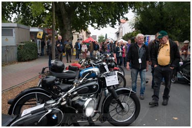 Motorrädern, die die Altstadtstraße in Dieburg säumen. Er kommt