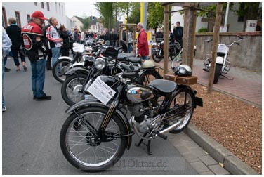Einen ersten Überblick verschaffen Schilder an den Lenkrädern, die über Marke, Modell und Baujahr informieren. Manche weisen noch auf eine Besonderheit hin. So hat der Besitzer einer NSU Super Lux, Baujahr 1955 den Zusatz „Tolles Teil“ darunter geschrieben.