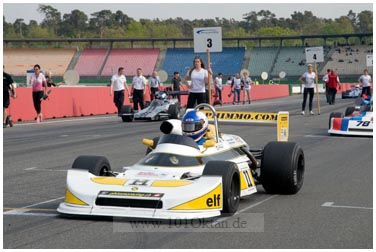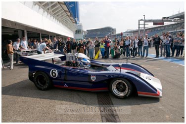 Überraschungsgast am Freitag war die Design-Legende Luigi Colani, der seinen Hauptwohnsitz bereits vor Jahren nach China verlegt hat. Der 86-jährige nutzte einen kurzen Deutschland-Aufenthalt für ein Wiedersehen mit dem Eifelland Formel 1-Rennwagen, den er im Auftrag des Wohnwagen-Herstellers Günther Hennerici zeichnete und mit dem er die Aerodynamik in der Formel 1 auf den Kopf stellen wollte. Selbstbewusst schwelgte Colani in Erinnerungen und berichtete, dass Rolf Stommelen bereits beim ersten Rennen in Kyalami/Südafrika den „fliegenden Kilometer“ - ein vorgegebener Kilometer, der nach einer definierten Beschleunigungsstrecke durchfahren wurde - als schnellster absolvierte. Jochen Mass war damals Weggefährte des Eifelland-Piloten Stommelen und brachte das Formel 1-Abenteuer des Wohnwagenherstellers auf den Punkt: „Es war damals ein gelungener PR-Gag.“