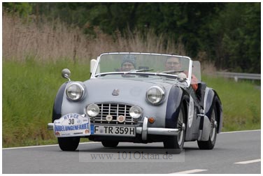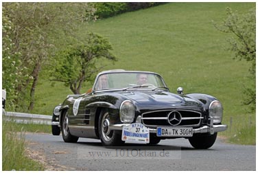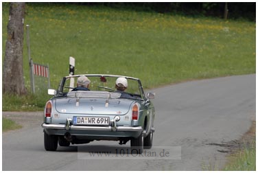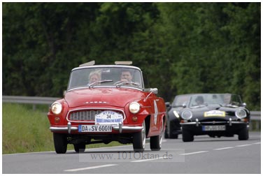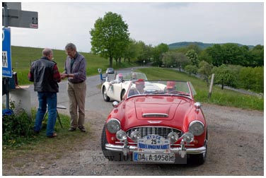 Auch Bernd Greiss wirft den Motor seines 86 PS starken Daimler DB 18 aus dem Jahr 1951 an, die Fahrt beginnt. Recht laut ist es in dem Cabriolet und Greiss hat mit dem Lenken und Schalten gut tun. Automatik und Servolenkung sind schließlich Erfindungen neuerer Zeit. Den Weg weist ihm sein Beifahrer Ralf Kempf, ein Freund und Nachbar, der die Begeisterung für das historische Fahrzeug teilt. Mit Karte und der Streckenbeschreibung bewaffnet müssen die Teilnehmer, wie bei einer Rallye üblich, an jeder Kreuzung selbst herausfinden, wo es lang geht.