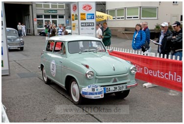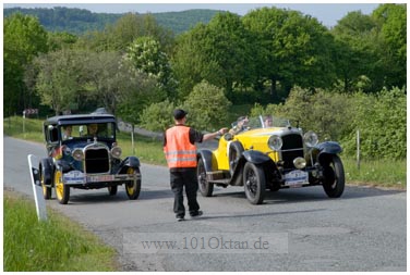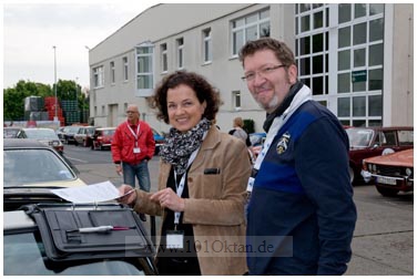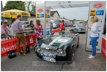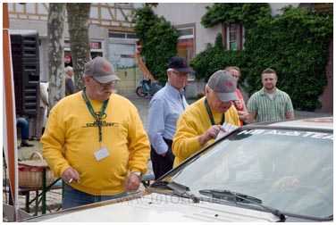 Das zeigt sich auch in den Orten, durch die die Oldtimertour führt. Hier stehen Schaulustige bereit, Moderatoren geben genauere Infos über die vorbeiziehenden Autos und ihre Fahrer. In Dieburg wird ein längerer Stopp eingelegt. Denn darum, als schnellster ins Ziel zu gelangen, geht es hier nicht. Einige typische Elemente einer Rallye gibt es aber trotzdem: Bei Gleichmäßigkeitsprüfungen sollen die Fahrer für eine kurze Strecke möglichst exakt eine bestimmte Geschwindigkeit halten. Bei Orientierungsaufgaben muss der genaue Streckenverlauf ohne Beschreibung herausgefunden werden. Wer das am besten macht, wird Gesamtsieger. Für die meisten Fahrer sei die Tour aber trotz solcher Aufgaben als reines Freizeitvergnügen, nicht als Wettkampf gedacht, erklärt Lothar Bartuschat vom RTCE. Für den Verein sei es außerdem eine schöne Gelegenheit, sein 50-jähriges Bestehen zu feiern.