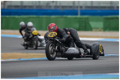 Motorräder und Gespanne präsentieren sich hier, auch Tourenwagen