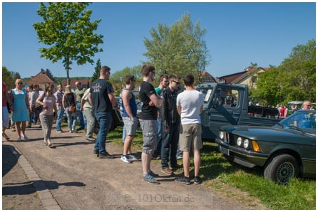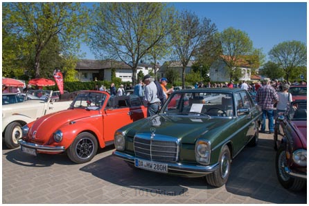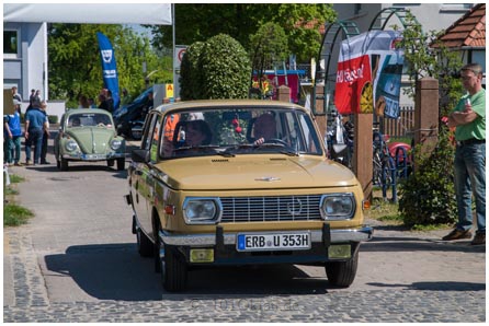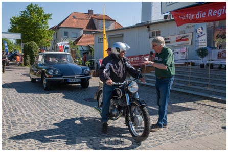 Überall blitzt und glänzt das Chrom der Fahrzeuge in der Sonne, während schön restaurierte alte Schätzchen und Raritäten das Auge des Oldtimer-Fans erfreuen. Geschwungene Linien kennzeichnen den metallic-blauen „Barockengel“ von BMW, von dem nur wenige gebaut wurden. Zehn Jahre schraubte Detlef Müller, ein Mitglied der Interessengemeinschaft, an der betagten Limousine. „Er ist ein Meister für die Restaurierung von Oldtimern“, berichtet Michael Anton von der Interessengemeinschaft. Auch die kultigen Isetta Kleinstwagen von BMW sind etwas Besonderes, die mittlerweile sehr teuer gehandelt werden. Liebhaber konnten auf dem Oldtimertreffen gleich drei von ihnen bestaunen. Eine Briten-Isetta 300, Baujahr 1961, von Roland Ihrig ist ein roter Reimport aus England mit Fronteinstieg, der auf drei Rädern fährt. Sie wird von der Jury als schönstes Auto prämiert. Auch eine größere, spätere Ausführung der Isetta mit normaler Achse und eine mit Doppelrad finden sich unter den ausgestellten Fahrzeugen.