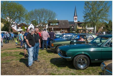 „Es sind ein paar schöne Autos dabei“, meint eine Rossdörfer Liebhaberin von alten Autos. „Mir gefällt besonders der orangene Hippiebus“, sagt Stella Schmitz. Auch Peter und Claudia Andres sind begeistert von den schönen Autos.