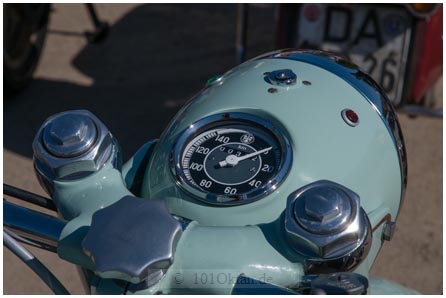 Als schönstes Motorrad zeichnet die Jury einen Untertürkheimer Zweizylinder UT TS 252, Baujahr 1953 aus. „Ich habe sie vor fünf Jahren von einem älteren Herren aus erster Hand gekauft“, erinnert sich Ursula Thilmany. Das unrestaurierte Original hätte sie sich aus einer Sammlung von Motorrädern herausgepickt. Ebenfalls prämiert wurde als schönstes Moped eine Miele K 50 mit Sachsmotor, Baujahr 1953 von Norbert Biskup.