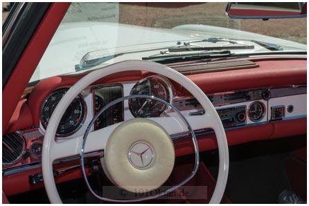 Ein Hingucker ist das grünblaue Chevrolet Cabrio Superior KK von 1925 mit seinen roten Sitzen. „Vor 30 Jahren habe ich es aus Neuseeland mitgebracht“, erzählt der Besitzer Heinz Lappert. Das 1989 restaurierte Auto hätte vorne keine Bremsen, kritisch läge das Gaspedal zwischen Kupplung und Bremse. Das betagte Fahrzeug wurde schon mehrere Male ausgezeichnet, auch heute wurde es als schönste Rarität prämiert.