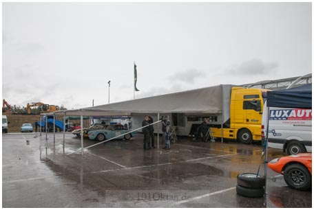 Die Autos sind schon im Trockenen